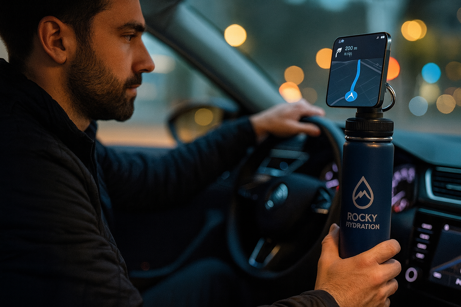 Rocky Hydration combines double-wall stainless steel insulation with a magnetic phone mount — so you can hydrate, navigate, call, and create without extra gear. From desk to drive to gym, one bottle does it all.